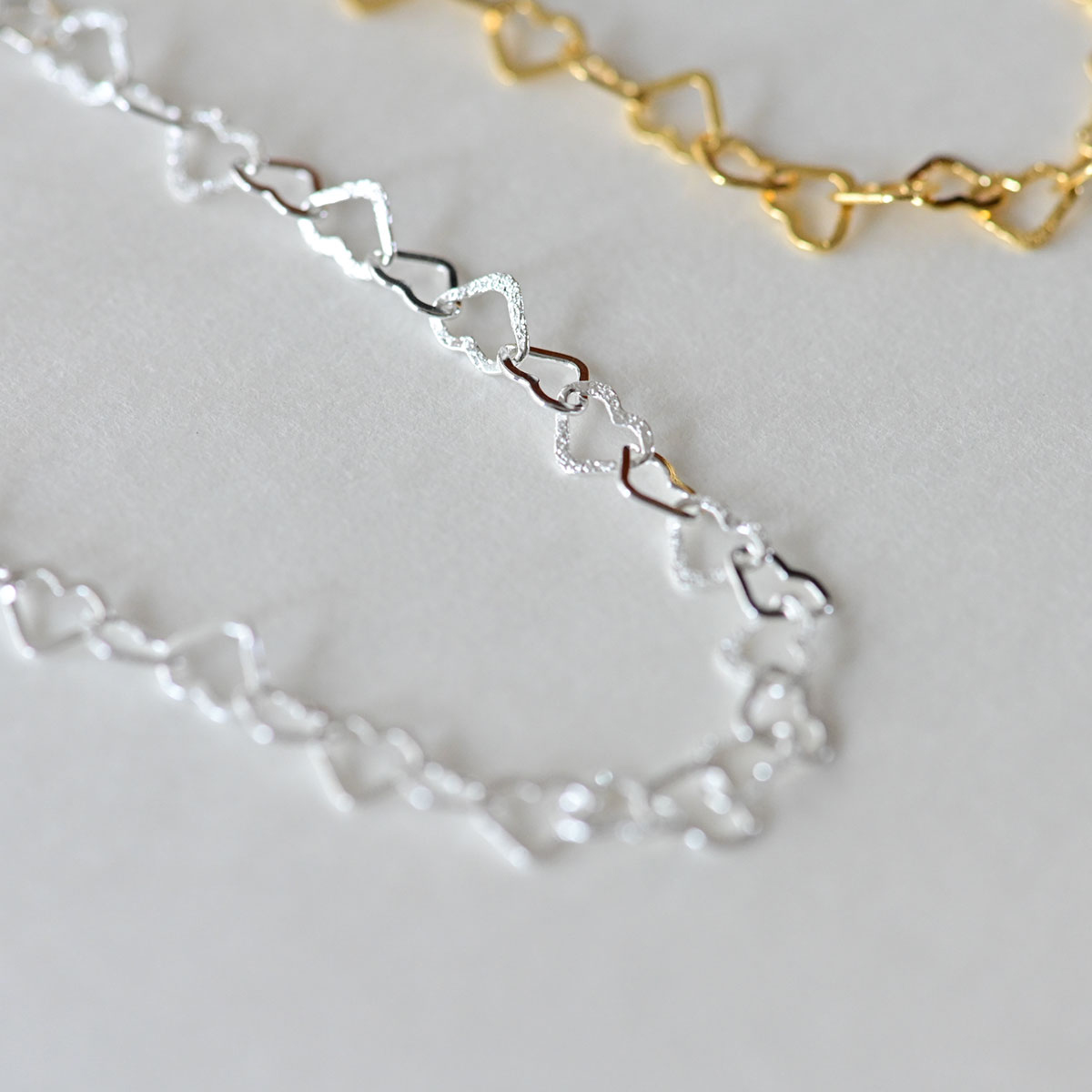 이태리 생산 체인으로 글리터링과 유광 하트가 번갈아 어울어져 그저 러블리한 목걸이 입니다. 너무나 가벼워 착용감이 느껴지질 않을 정도 입니다.