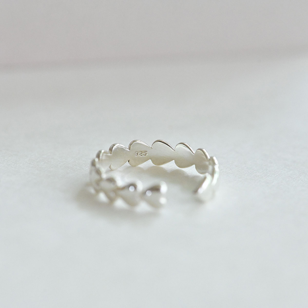 올록볼록한 느낌이 재미있는 미니 하트 오픈 반지 입니다. 오픈 반지로 뒤 부분 벌어짐을 조절하여 11~16호까지 이쁘게 착용하실 수 있습니다.