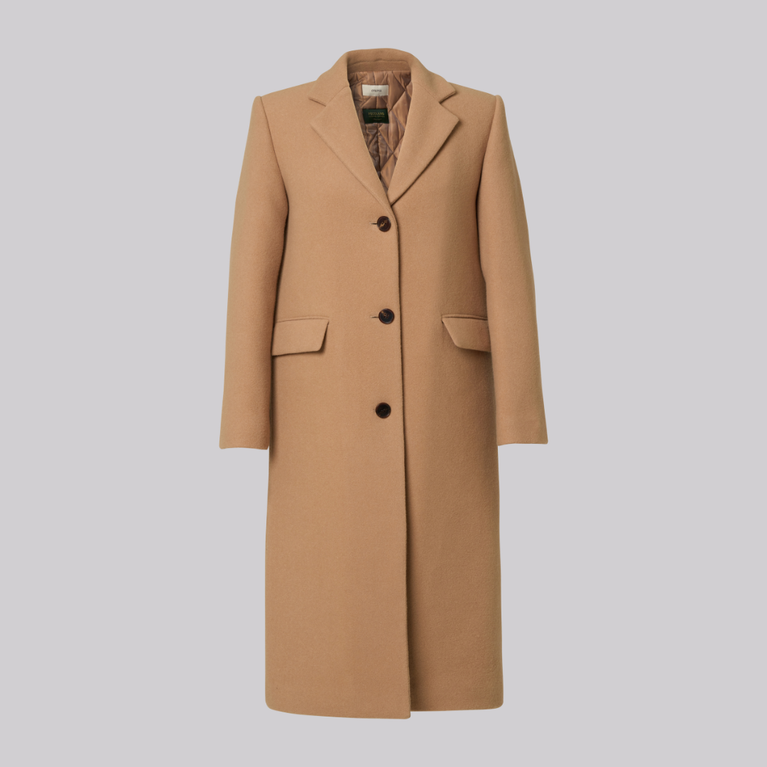Frosty outside, Toasty inside! 메스킬런 스타일에서 영감을 받았습니다. 하드한 메스킬런 라인을 소프트한 느낌의 여성스러운 라인으로 재해석하여 군더더기 없는 간결한 세련미를 강조하여 소재 자체에서 주는 고급스러움 과 보온성에 집중한 MAGGIE 램스울 코트입니다.